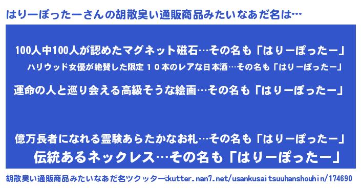 | ファンタジー風あだ名 | 『エターナルハリーポッターー』 |