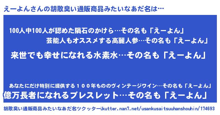 | ヒーロー風カッコイイあだ名 | 『ネオエーヨン』『友情の使者えーよん』 |