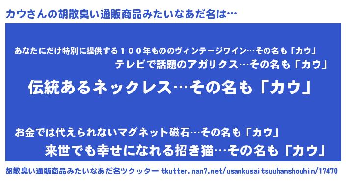 | ヘコむあだ名 | 『カウ太郎』『カウ(笑)』『カウにー』 |