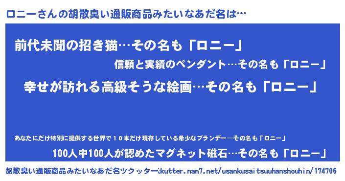 | 意味不明あだ名 | 『ロニーフォーエバー』『永久保存ロニー』 |