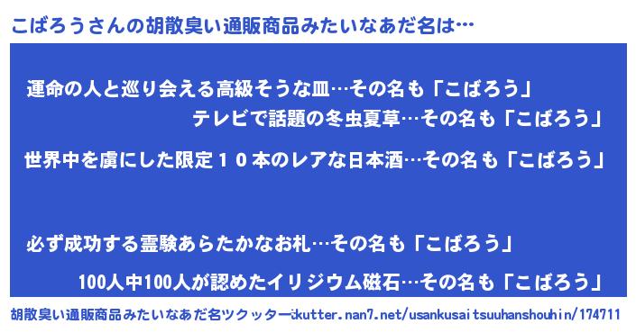 | ヒーロー風カッコイイあだ名 | 『仮面コバダー』『ウルトラこばろうマン』 |