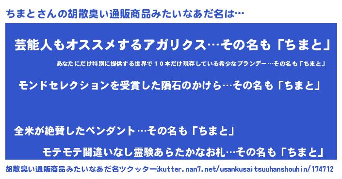 | 意味不明あだ名 | 『眠気覚ましガムちまと味』『自称ちまと』 |
