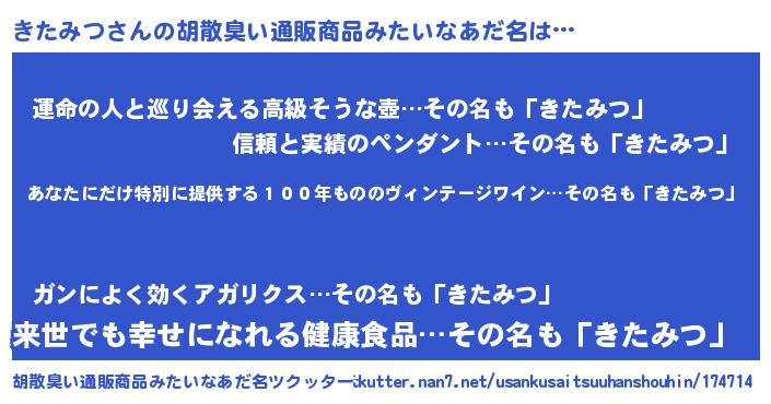 | 意味不明あだ名 | 『住所不定無職きたみつ(4歳)』 |