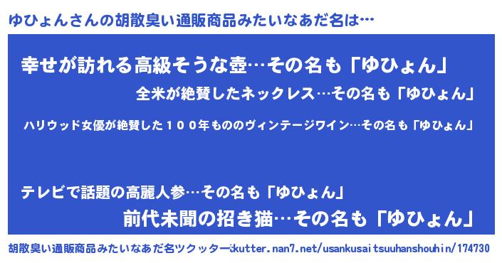 | ピコ太郎風あだ名 | 『ピユ三郎』『ピコユ郎』『ユヒ太郎』 |