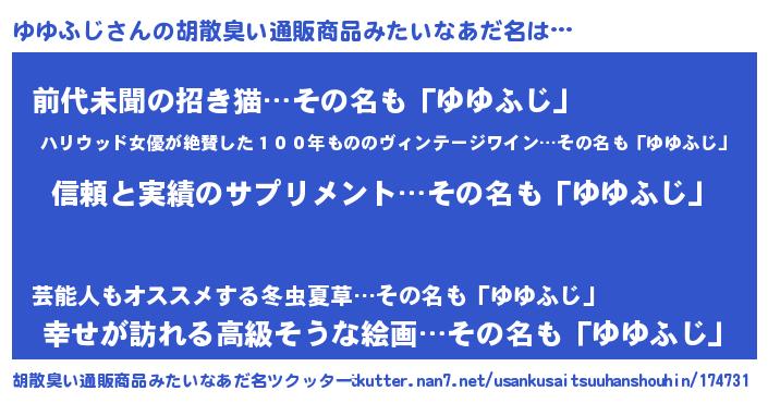 | 欧米人風あだ名 | 『ウサインゆゆふじ』 |