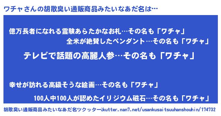 | 意味不明あだ名 | 『自称ワチャ』『ペロリンワチャ』 |