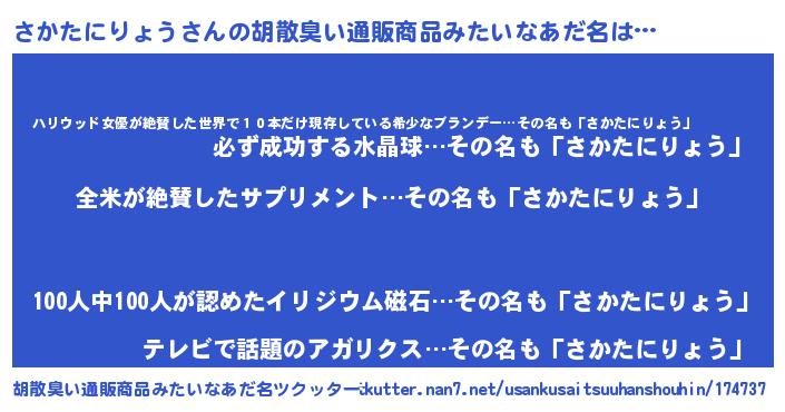 | 意味不明あだ名 | 『とにかく怪しいさかたにりょう』 |