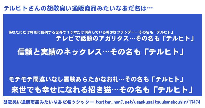 | 男性向けラノベタイトル風あだ名 | 『ダンジョンにテルヒトを求めるのは間違っているだろうか』 |