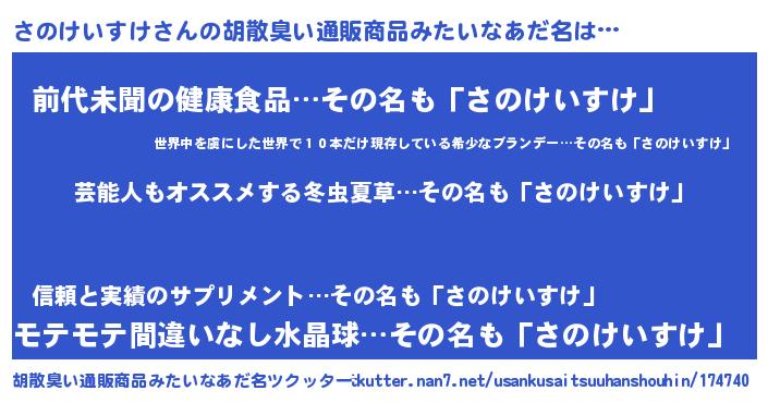 | 意味不明あだ名 | 『自称さのけいすけ』 |