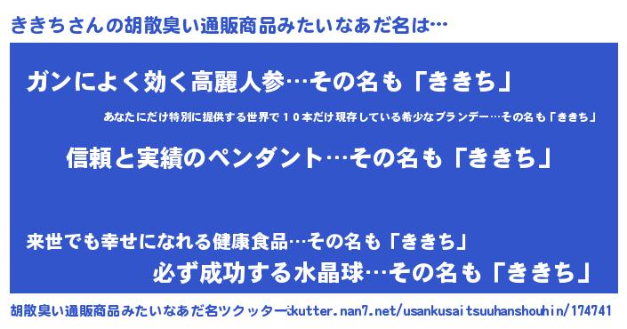 | 意味不明あだ名 | 『とにかく怪しいききち』『自称ききち』 |