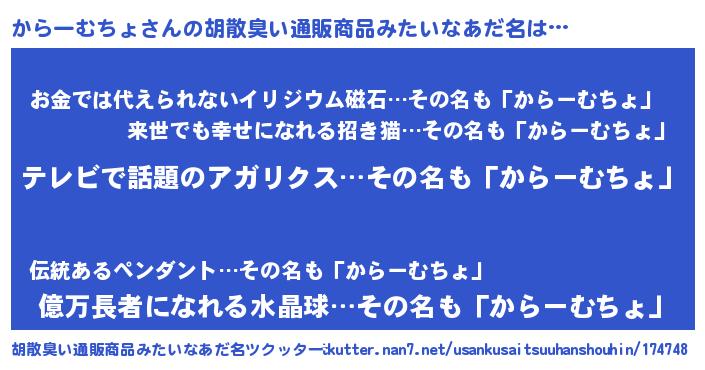 | 意味不明あだ名 | 『自称からーむちょ』 |