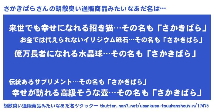 | ヘコむあだ名 | 『さかにゅー』『さかきばら(笑)』 |