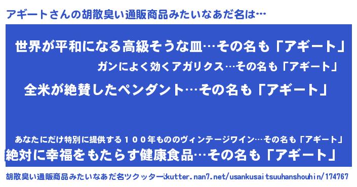 | ヘコむあだ名 | 『アギぷりん』『牛乳』『アギもー』 |