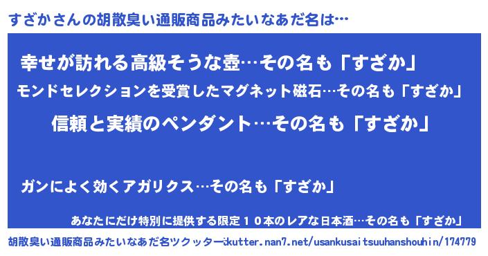 | 意味不明あだ名 | 『とにかく怪しいすざか』 |