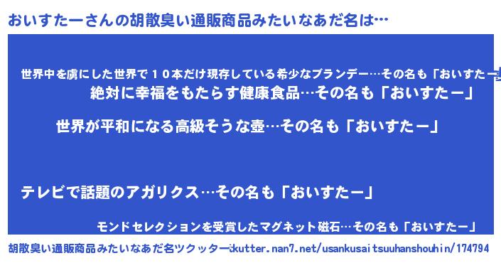 | 意味不明あだ名 | 『おいすたーフォーエバー』 |