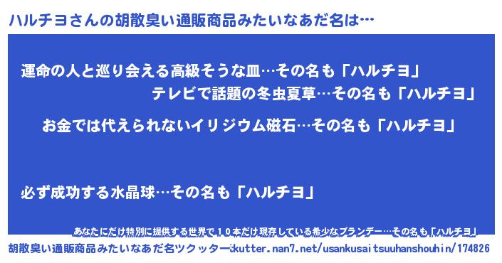 | ポケモン風あだ名 | 『ハックウザ』『ハルチダネ』 |