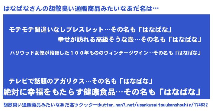 | ヘコむあだ名 | 『はなふぇ~』『はなばな(笑)』 |