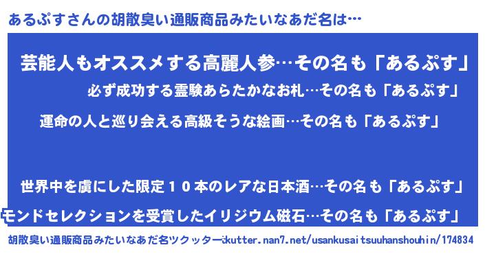 あるぷすさんの胡散臭い通販商品みたいなあだ名をツクッター!