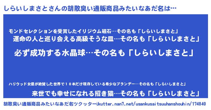 | 肩書あだ名 | 『しらいしまさと少将』 |