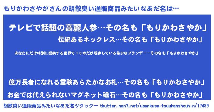 | ヘコむあだ名 | 『もりっちょ』『もりにゅー』 |