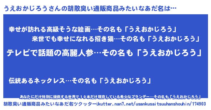 | ヘコむあだ名 | 『なまこ酢』『うえおかじろう(笑)』 |