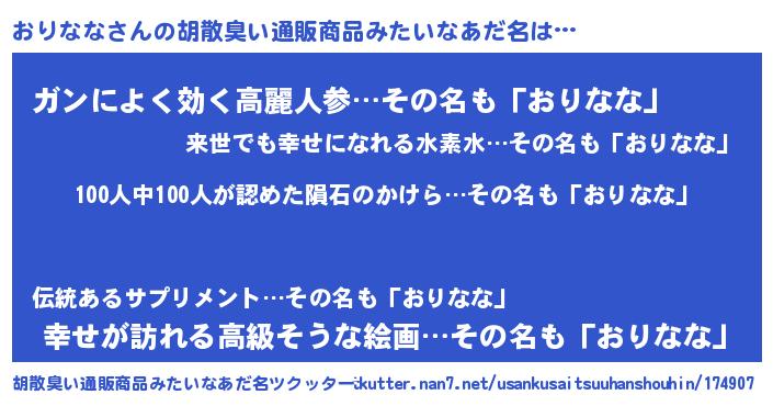 | ヒーロー風カッコイイあだ名 | 『正義の使者おりなな』『ネオオリナナ』 |