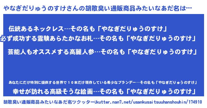 | 意味不明あだ名 | 『自称やなぎだりゅうのすけ』 |
