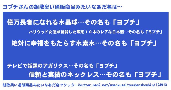 | 意味不明あだ名 | 『永久保存ヨブチ』『ペロリンヨブチ』 |