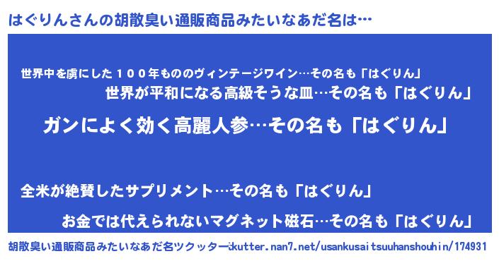 | 男性向けラノベタイトル風あだ名 | 『緋弾のハグリン』 |