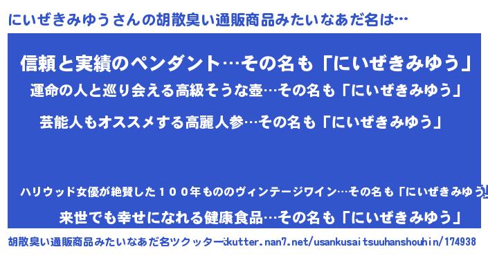 にいぜきみゆうさんの胡散臭い通販商品みたいなあだ名をツクッター!