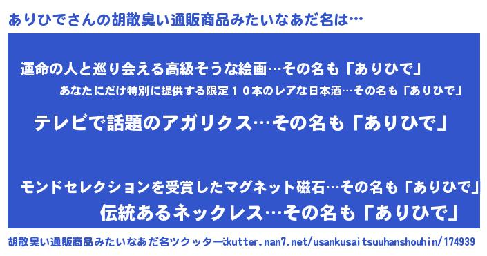 ありひでさんの胡散臭い通販商品みたいなあだ名をツクッター!