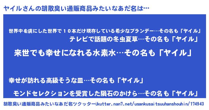 | 意味不明あだ名 | 『永久保存ヤイル』『自称ヤイル』 |