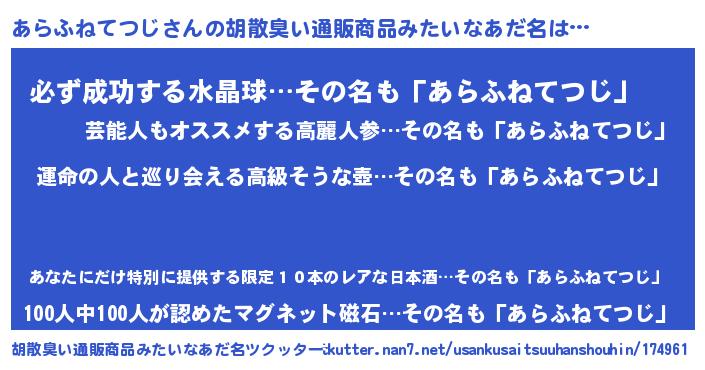 | 意味不明あだ名 | 『あらふねてつじフォーエバー』 |