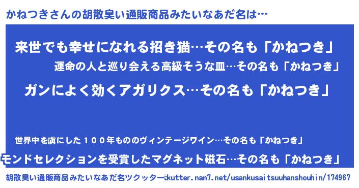| 恥ずかしいあだ名 | 『カネツキデラックス』『かねちん』 |