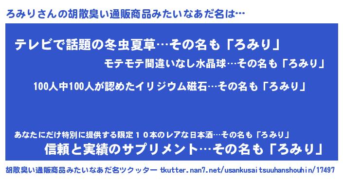 | 意味不明あだ名 | 『眠気覚ましガムろみり味』『自称ろみり』 |