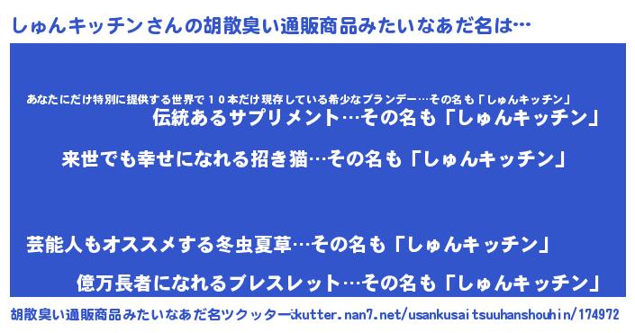 | 意味不明あだ名 | 『永久保存しゅんキッチン』 |