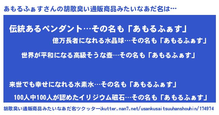 | 意味不明あだ名 | 『あもるふぁすフォーエバー』 |