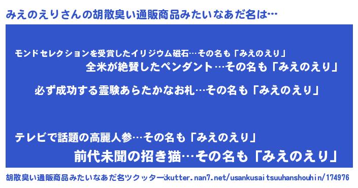 | 意味不明あだ名 | 『ペロリンみえのえり』『自称みえのえり』 |