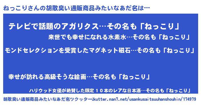 | ヘコむあだ名 | 『ねっこり(小並感)』『なまこ酢』 |