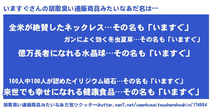 | ヘコむあだ名 | 『いまもー』『いまぷりん』 |