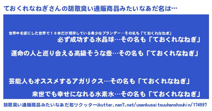 | 意味不明あだ名 | 『ておくれなねぎフォーエバー』 |