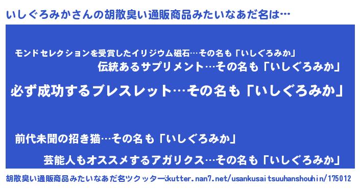 | 男性向けラノベタイトル風あだ名 | 『いしぐろみかの憂鬱』 |