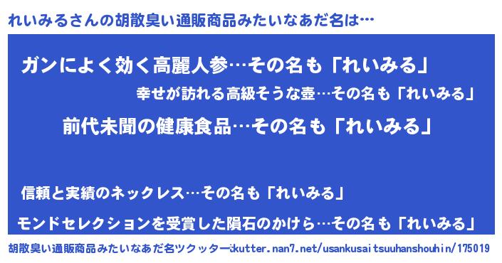 | 意味不明あだ名 | 『永久保存れいみる』『自称れいみる』 |