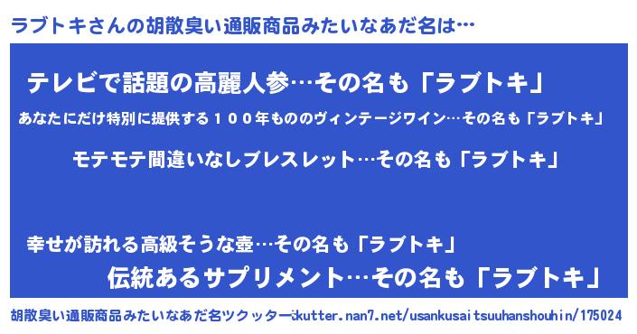 | 意味不明あだ名 | 『ペロリンラブトキ』『自称ラブトキ』 |