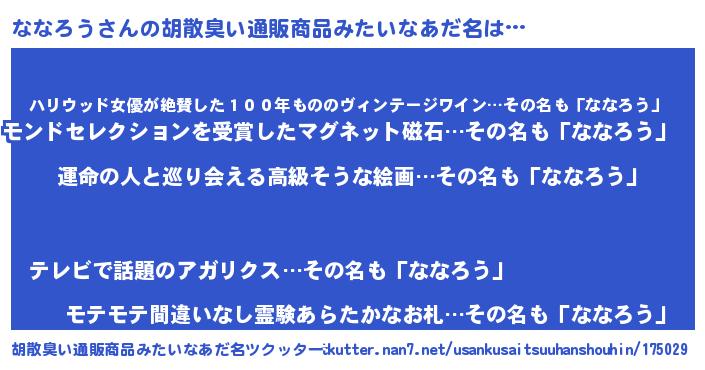| ヒーロー風カッコイイあだ名 | 『ウルトラななろうマン』『仮面ナナダー』 |