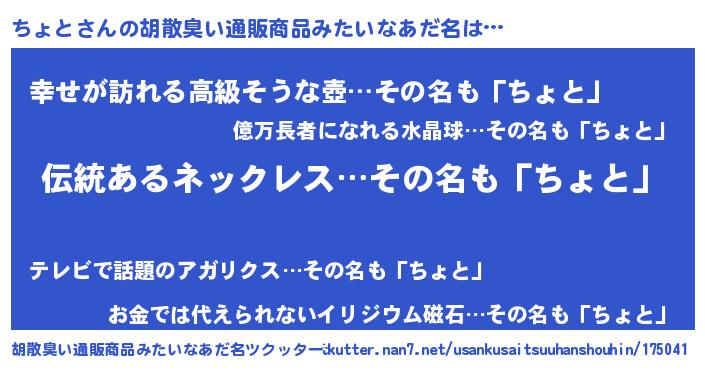 | 意味不明あだ名 | 『とにかく怪しいちょと』『自称ちょと』 |