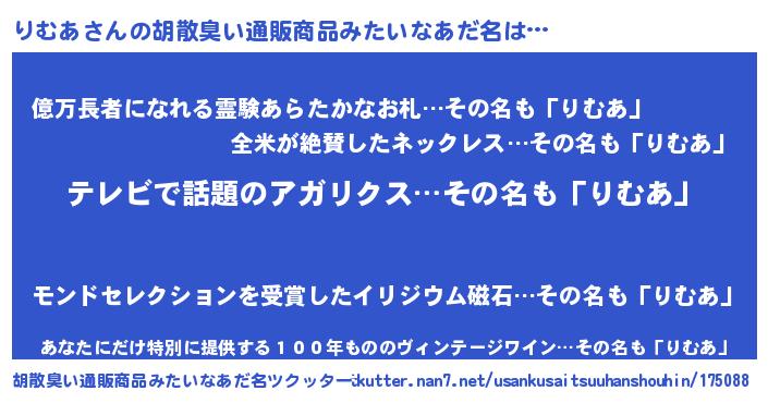 | 意味不明あだ名 | 『自称りむあ』『ペロリンりむあ』 |