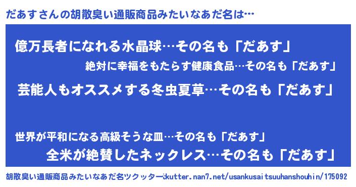 だあすさんの胡散臭い通販商品みたいなあだ名をツクッター!