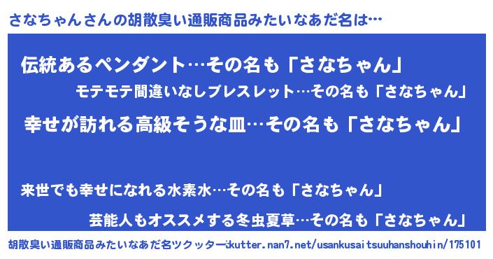 | 意味不明あだ名 | 『さなちゃんフォーエバー』 |