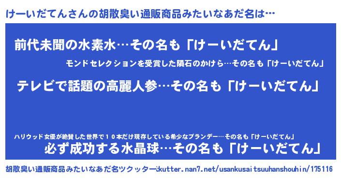 | 意味不明あだ名 | 『自称けーいだてん』 |